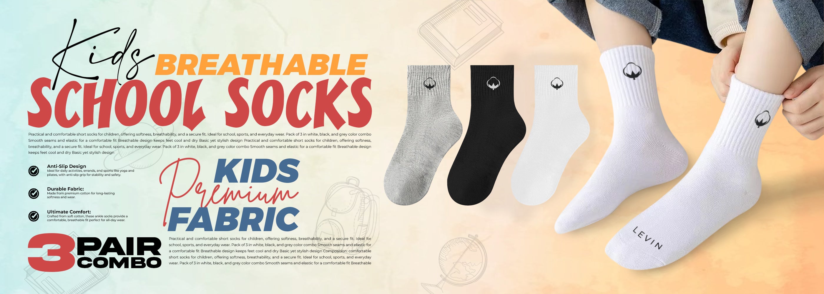 Pack of 3 Kids Premium Short Breathable Basic School Socks (2-14 Years)