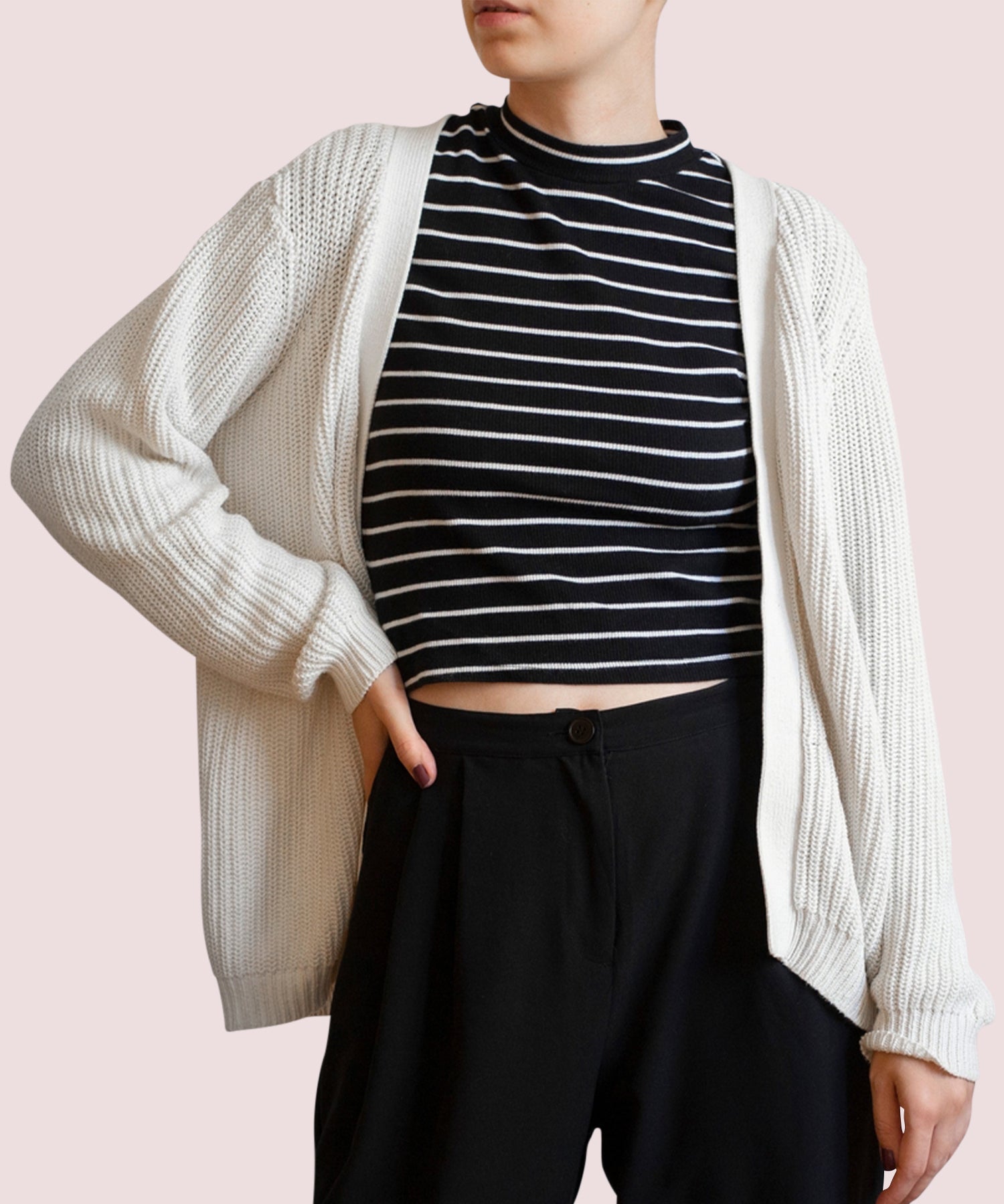 Ladies Full Sleeve Pointelle Cropped Cardigan Top
